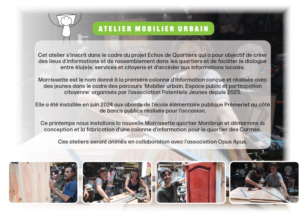30 mars Information collective27 janvier 2026 Publié par Sophia Burns le 23 mars 2026 Catégories Activités Ateliers Compétences douces Morrissette Nos actualités Nos projets Parcours Rencontre Apprenante Tags espace publiclodevemicro-trottoirsParcourspodcastpotentiels jeunes Partager Sophia Burns Chargée de communication pour l'association Sophia est aussi une artiste audiovisuel depuis 1994. Articles liés27 janvier 202630 mars Information collectiveLire plus9 janvier 2026Retour vers le futurLire plus14 novembre 2025Atelier Je découvre : Le mobilier urbainLire plus Laisser un commentaire Annuler la réponseVotre adresse e-mail ne sera pas publiée. Les champs obligatoires sont indiqués avec *Commentaire * Nom * E-mail * Site web Enregistrer mon nom, mon e-mail et mon site dans le navigateur pour mon prochain commentaire.